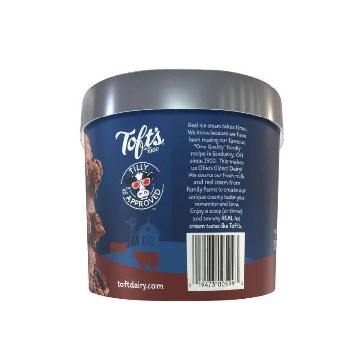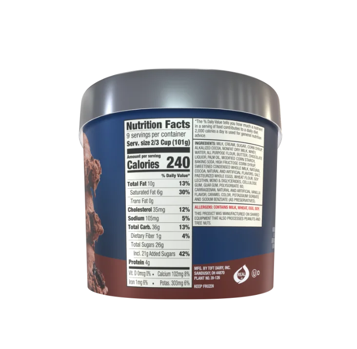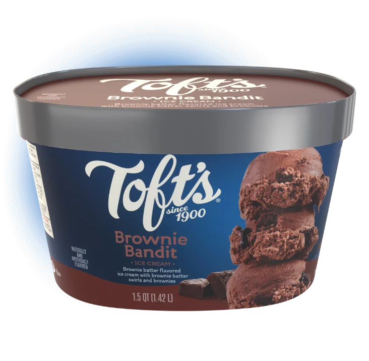 Brownie batter flavored ice cream with brownie batter swirls and brownies
